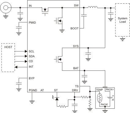 - 基于电压的,负温度系数热敏电阻 (NTC) 监控输入(TS)JEITA 兼容