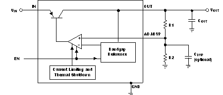 external bypass capacitor connected to the BYP pin, which reduces the output noise of the