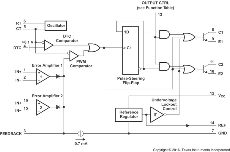 circuitry to a specific application.The TL594 device contains two error amplifiers, an on-chip adjustable oscillator, a