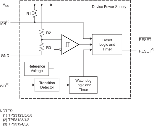 level at MR causes RESET to become active. The TPS3124 devices do not have the input