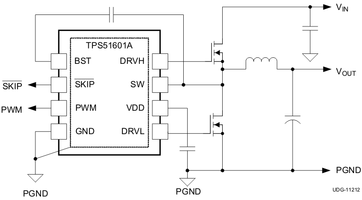 shoot-through protection are included. The TPS51601A is available in the space-saving 8-pin 3 mm × 3 mm SON package and operates between –40°C and 105°C.